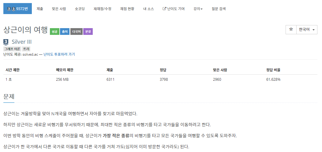 9372번: 상근이의 여행