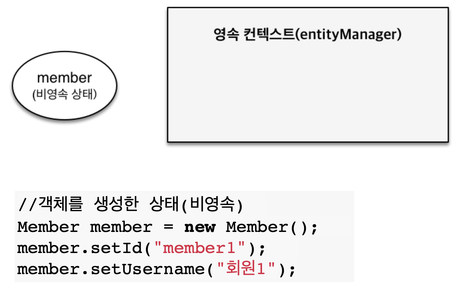 - 해당 코드의 의미는 DB에 저장되지만 DB에 저장한다는 의미가 아닌 영속성 컨텍스트에 저장한다는 의미입니다.