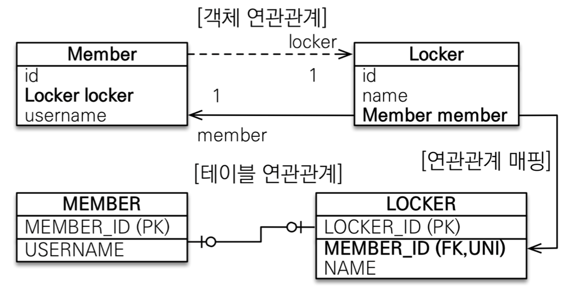 외래 키는 Member, Locker 어디에 넣어도 상관없다. 위의 예시에서는 Member에 외래 키를 넣었습니다. 다대일(@ManyToOne) 단방향 매핑과 유사