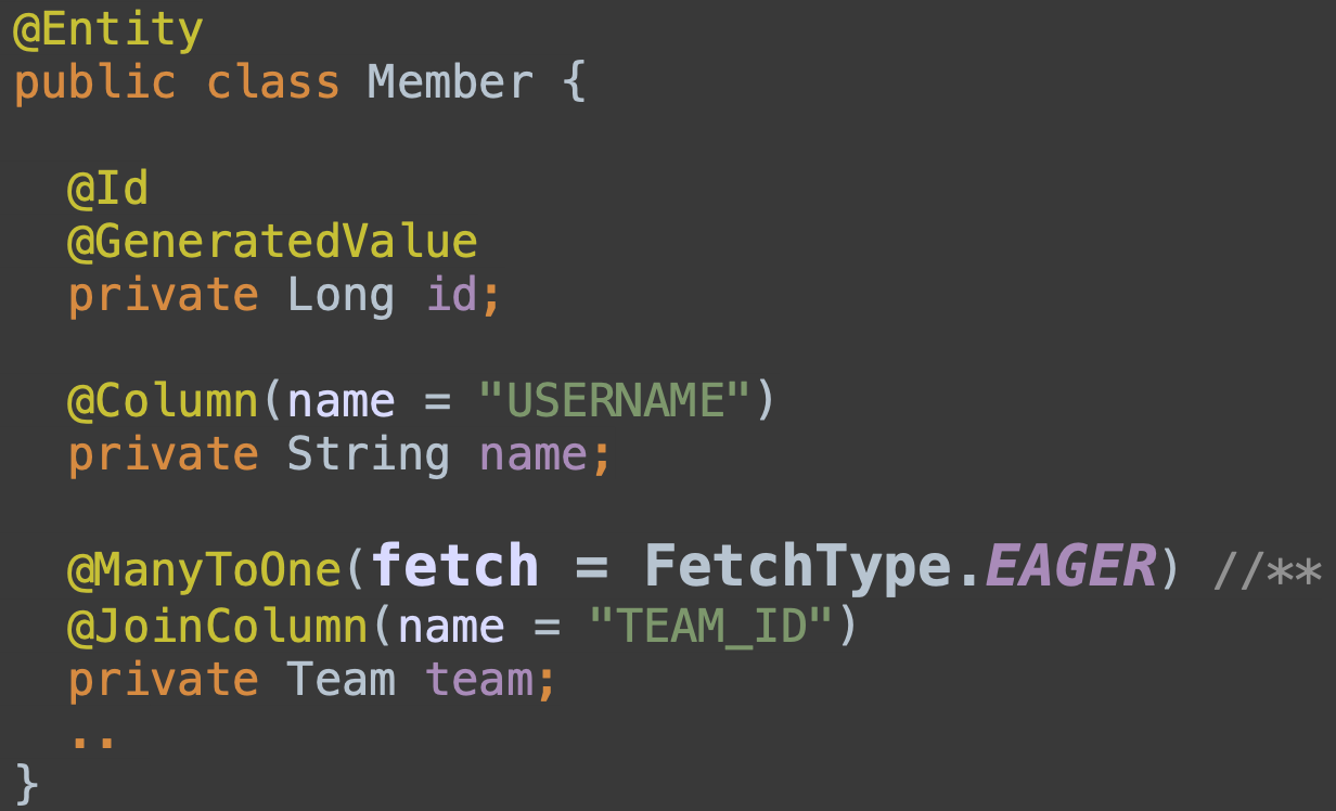 - Member와 Team은 자주 함께 사용 -> 즉시 로딩