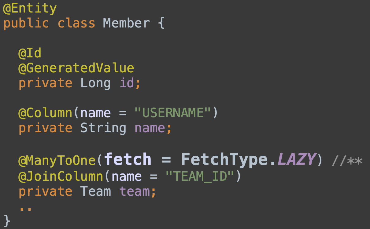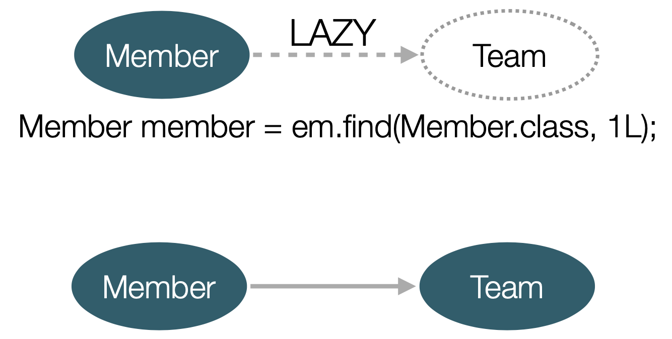 이것은 비즈니스 로직에 따라 다르지만, 단순히 member 정보만 조회하는 비즈니스 로직에서는 Team에 대한 쿼리문을 날릴 필요가 없다.