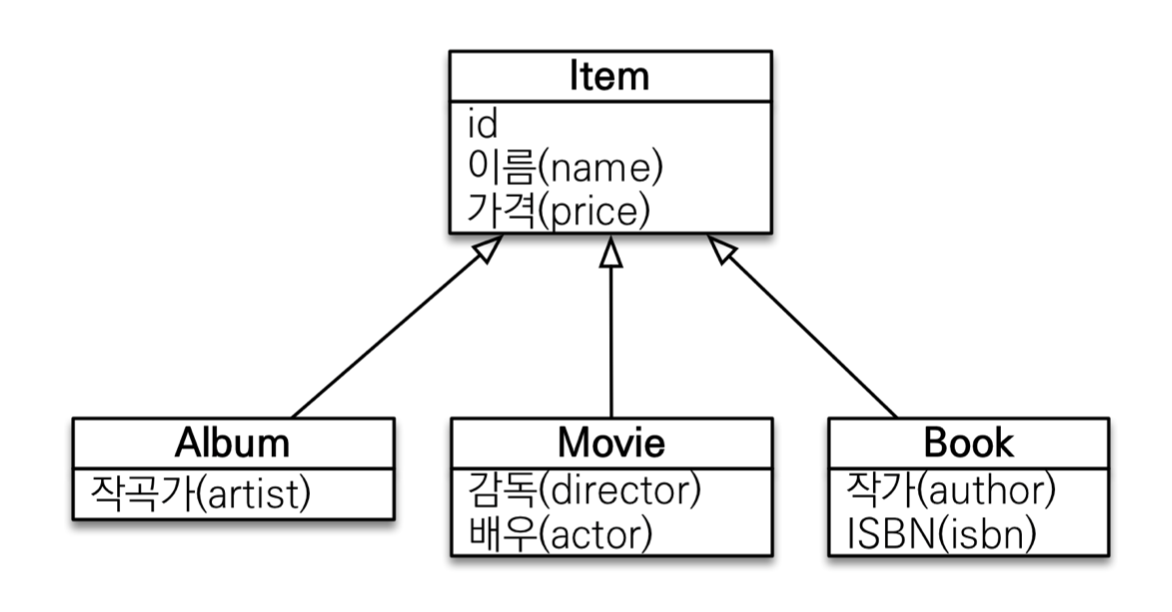 - 예) 부모인 Item과 자식 Book이 있다.