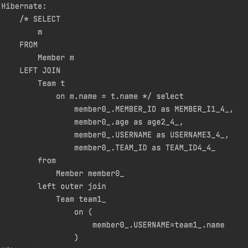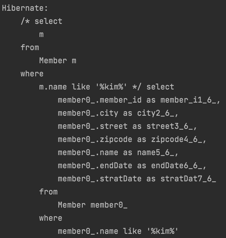 select count(m) from Member m // 엔티티를 직접 사용 - [SQL] (JPQL 둘 다 같은 다음 SQL 실행)
