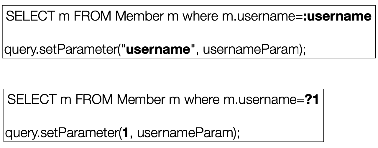 String jpql = "select m from Member m where m.id = :memberId";
