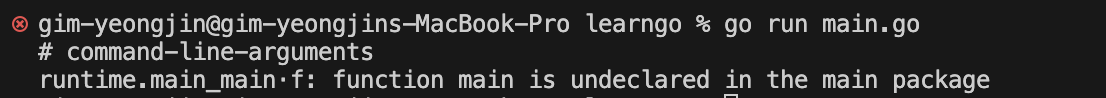 main package 안에 function main이 선언되어있지 않다는 친절하고 명확한 에러로 개발을 편리하게 도와줍니다.