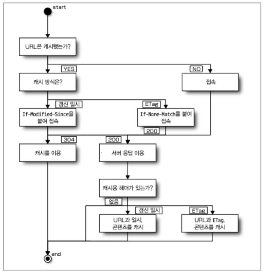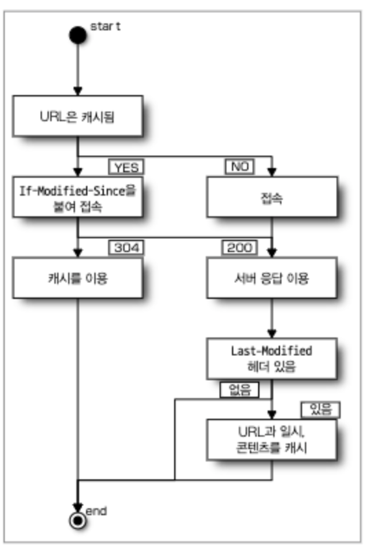 웹 브라우저가 캐시된 URL을 다시 읽을 때는 서버에서 반환된 일시를 그대로 If-Modified-Since 헤더에 넣어서 요청
