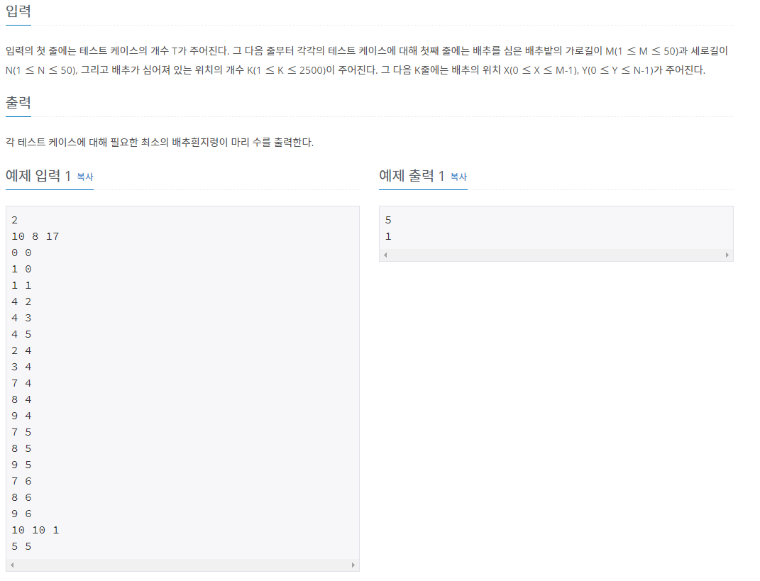 | [BOJ/JAVA] 백준 1012번 : 유기농 배추 (0) | 2021.02.19 |
