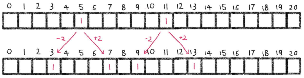 그 다음 2가 올 때 할 수 있는 연산은 +2, -2 이다.