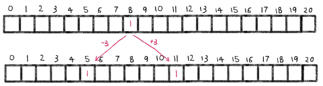 8 다음 3이 올 때, 3에서 할 수 있는 연산은 +3, -3 이다.