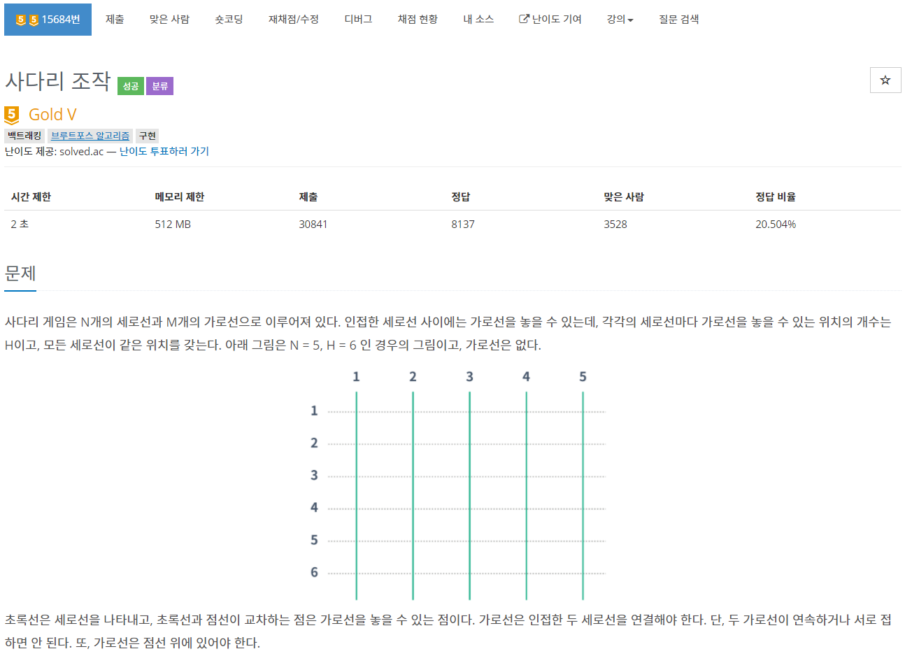 | [BOJ/JAVA] 백준 15684번 : 사다리 조각 (0) | 2021.02.08 |