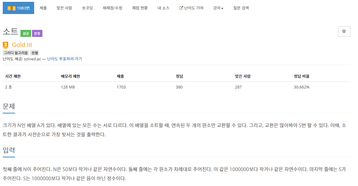 | [BOJ/JAVA] 백준 1083번 : 소트 (0) | 2021.02.05 |