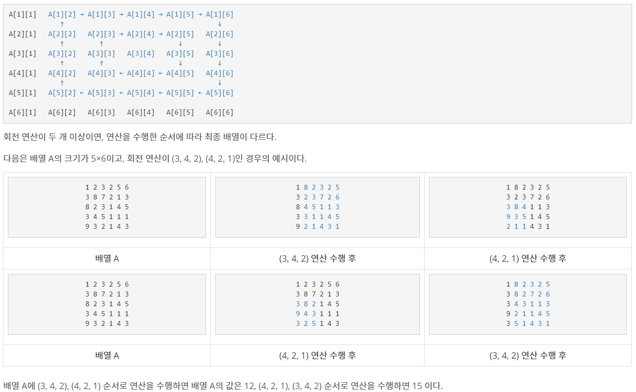 이대로 했는데, 틀렸다. 문제는 K번 index가 주어질 때 순서대로 회전을 시키는 것이 아닌 순서와 상관없이 돌렸을 때 가장 작은 행의 값을 찾는 문제였다.