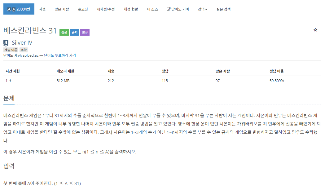 | [JAVA] 백준 20004번 : 베스킨라빈스 31 (0) | 2020.12.07 |