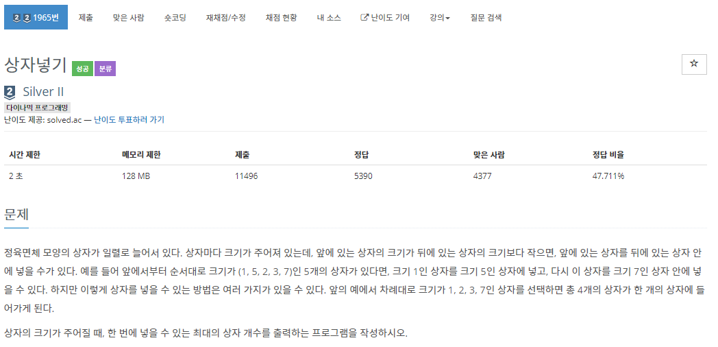 | [JAVA] 백준 1965번 : 상자넣기 (0) | 2020.10.26 |