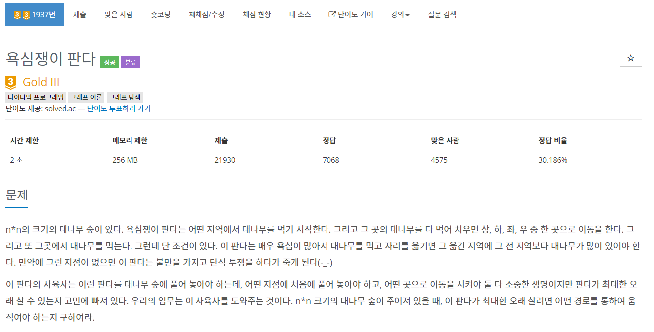 | [JAVA] 백준 1937번 : 욕심쟁이 판다 (0) | 2020.11.02 |