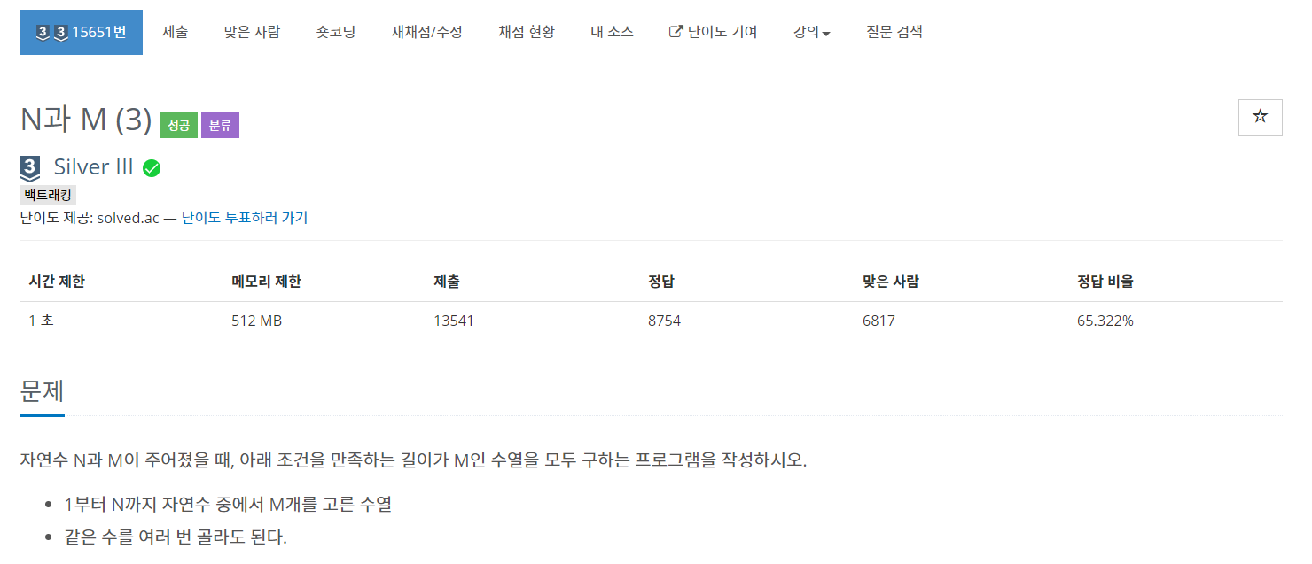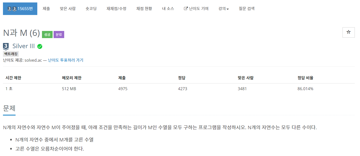| [JAVA] 백준 15655번 : N과 M (6) (0) | 2020.09.01 |