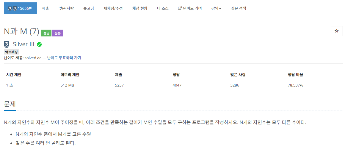 | [JAVA] 백준 15656번 : N과 M (7) (0) | 2020.09.01 |