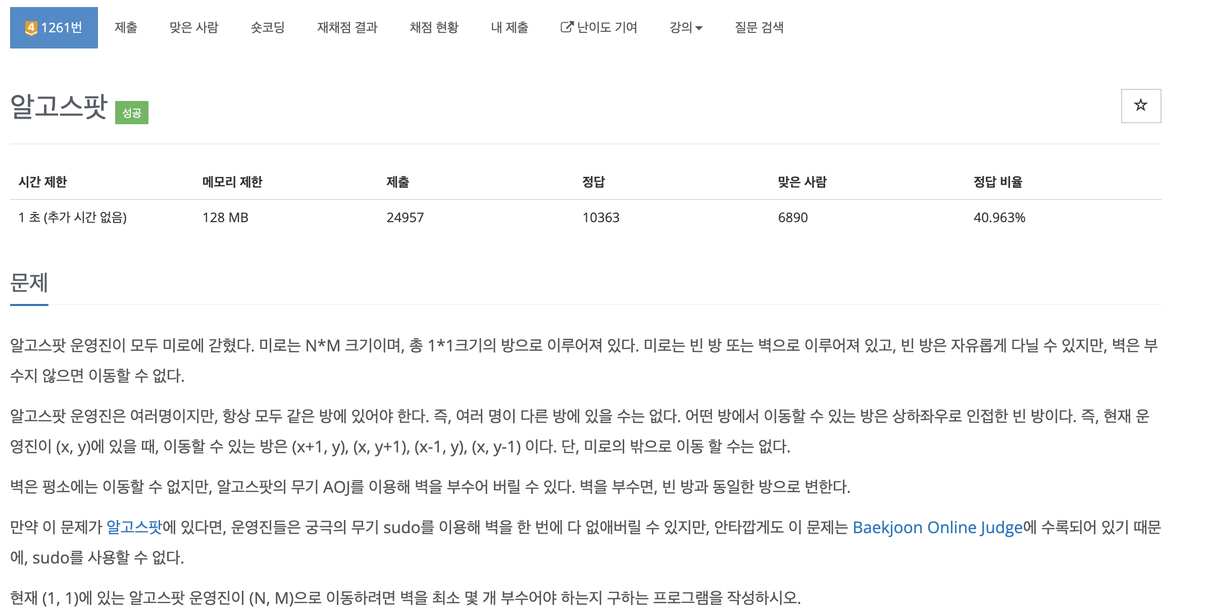 | [BOJ/JAVA] 백준 1261번 : 알고스팟 (0) | 2021.10.20 |