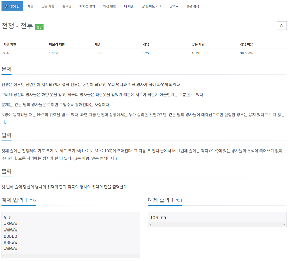 | [BOJ/JAVA] 백준 1303번 : 전쟁 - 전투 (0) | 2021.08.02 |
